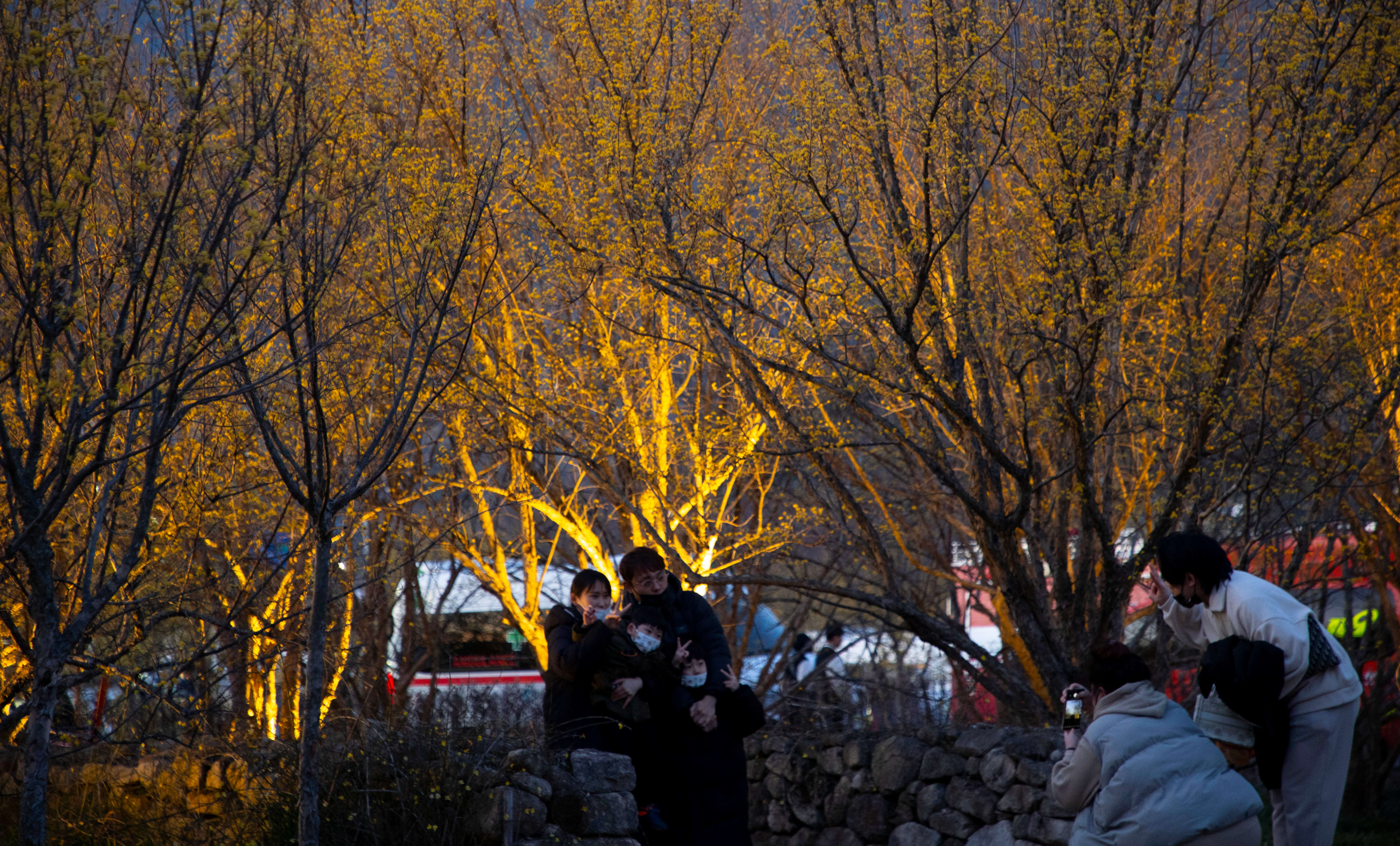 📷 해질녘 방문 추천 (황금빛 햇살과 산수유 꽃이 조화로운 순간)